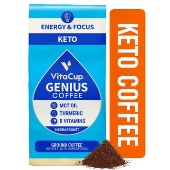 Vitacup Genius Blend Ground Coffee With Mct Oil Turmeric B Vitamins Medium Roast 10 Oz Bag Walmart Com